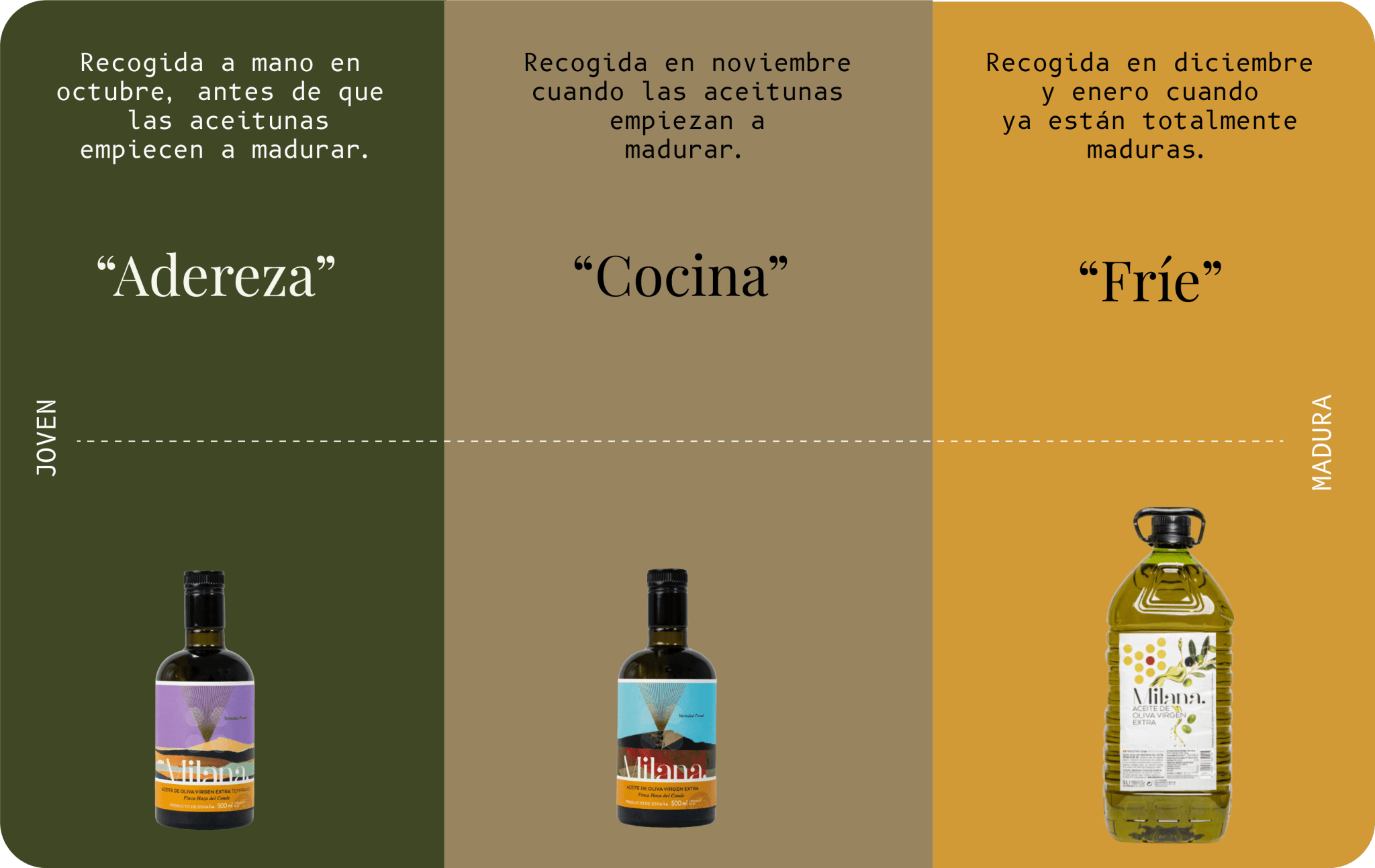 Pues el fruto tiene 3 frases en las que podemos recolectar tres tipos de aceite par diferentes usos en tu cocina.